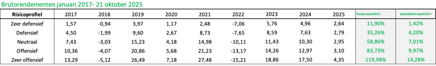 De waarde van uw beleggingen kan fluctueren. In het verleden behaalde resultaten bieden geen garantie voor de toekomst. U kunt uw inleg (gedeeltelijk) verliezen.